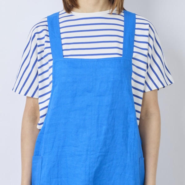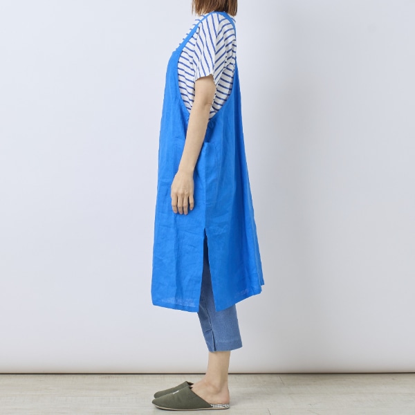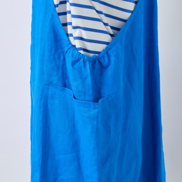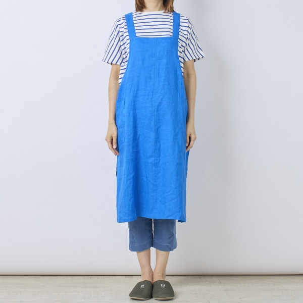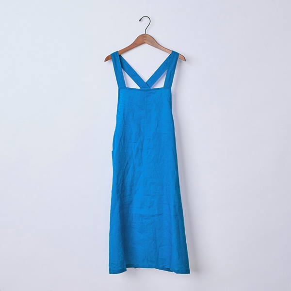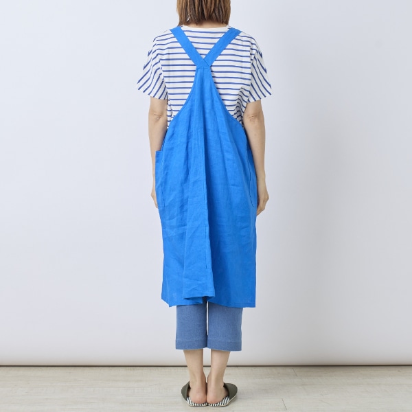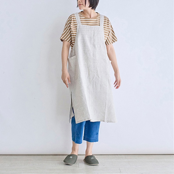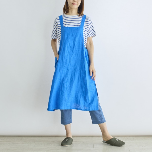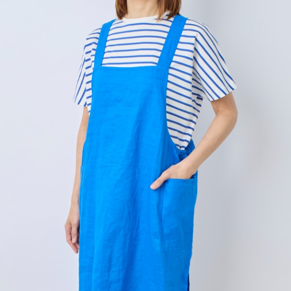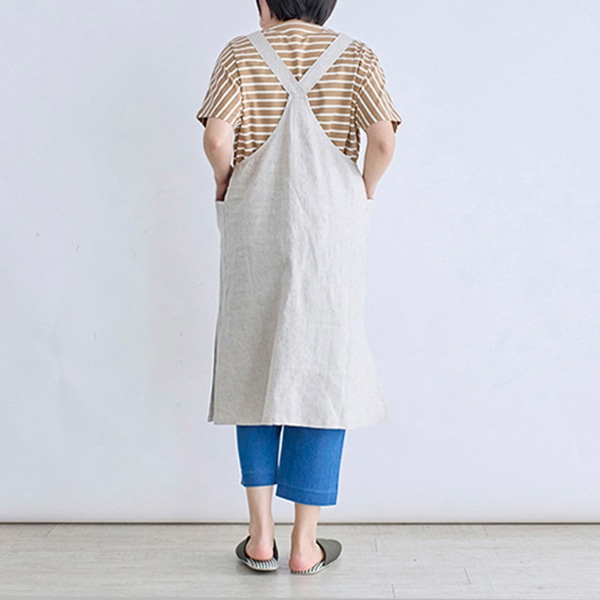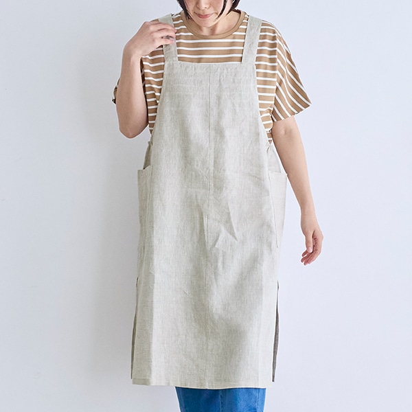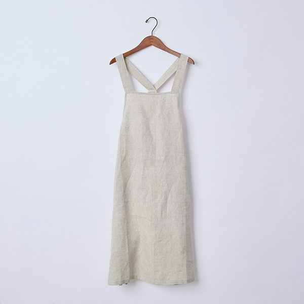 リネン100%素材を使用した、ジャンパースカートタイプのエプロン。