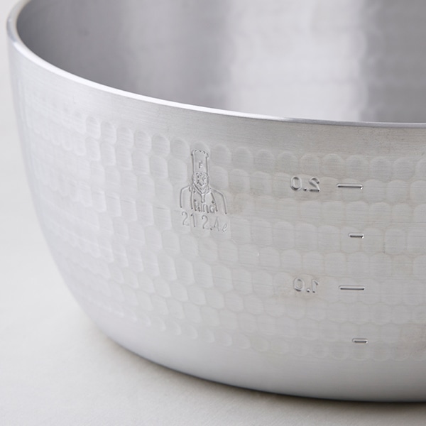 表面には、打ち出し加工を施しているため、強度が高く、長時間の調理にも適しています。