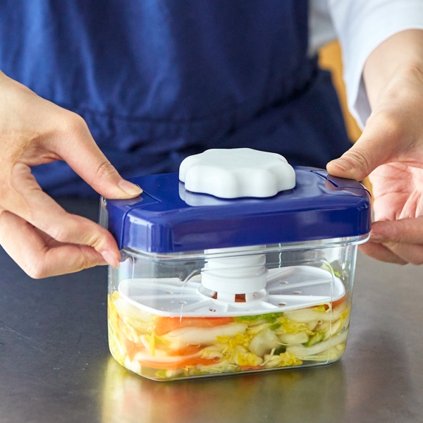 余った少量の野菜を使い切りたいときや、あと一品欲しいときなど、手軽に漬物が作れる便利な道具です。