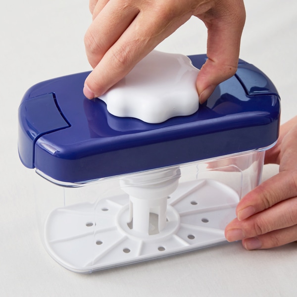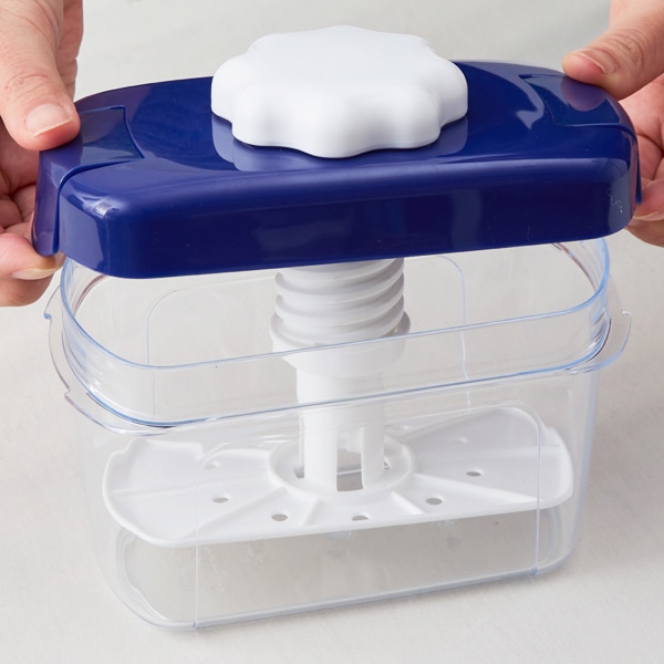 切った食材と調味料を容器に入れたら、蓋を閉じてハンドルを回すだけ。