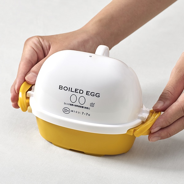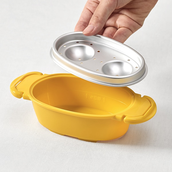 水を入れて電子レンジで加熱をすれば、簡単にゆでたまごが作れるレンジ調理器。
