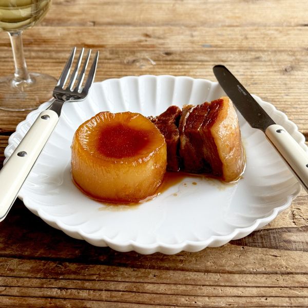 プレートの縁を立ち上げ、汁気のある料理にもデザートにも合う形です。