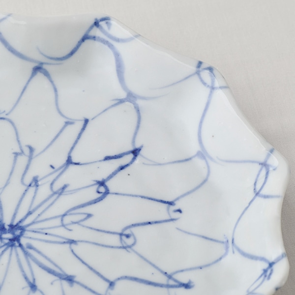 ひとつひとつ手作業で作られた、縁の輪花の形も、手作りにしか出せないあじわいです。