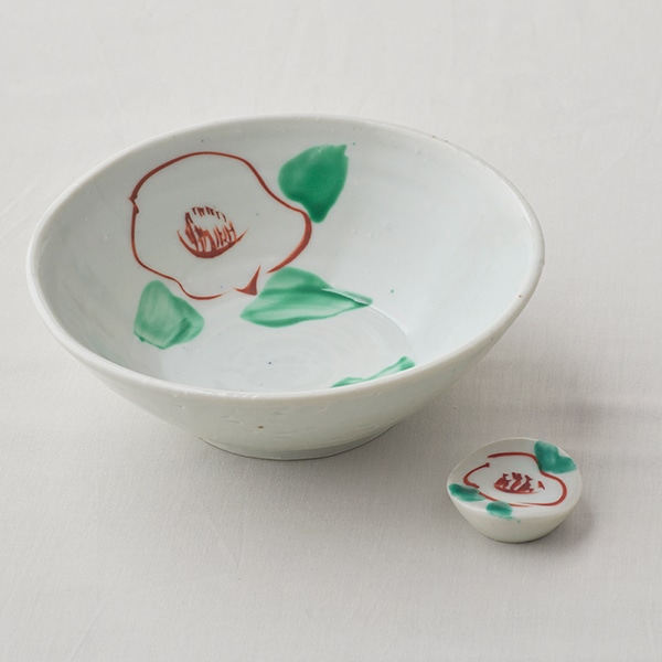 椿がぱっと咲いたような、大胆な絵付けが特徴的で、小さくても存在感があります。