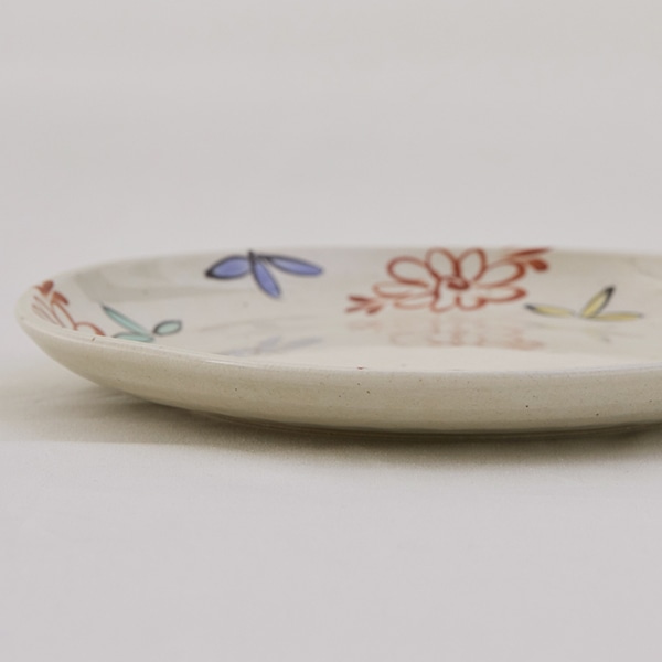 お正月に飾ると福を呼び込むとされる菊を、手描きであしらった大皿。