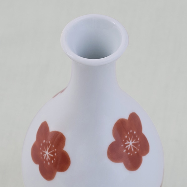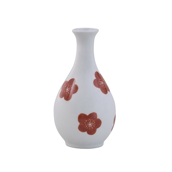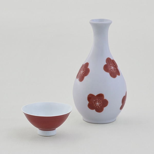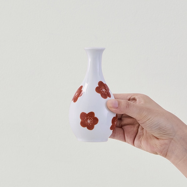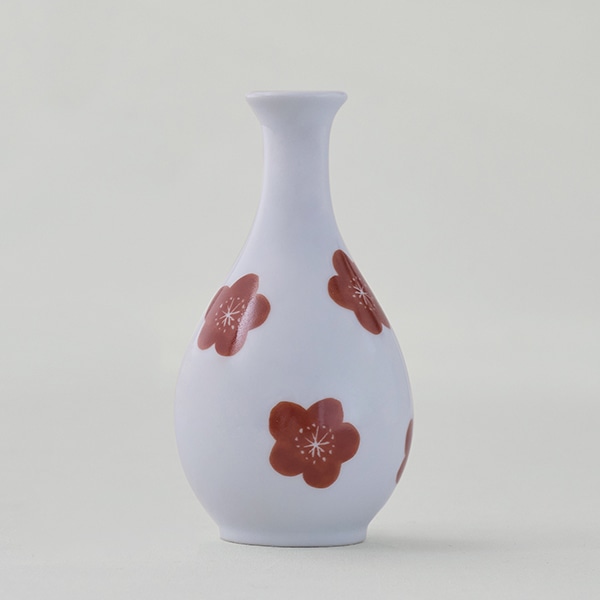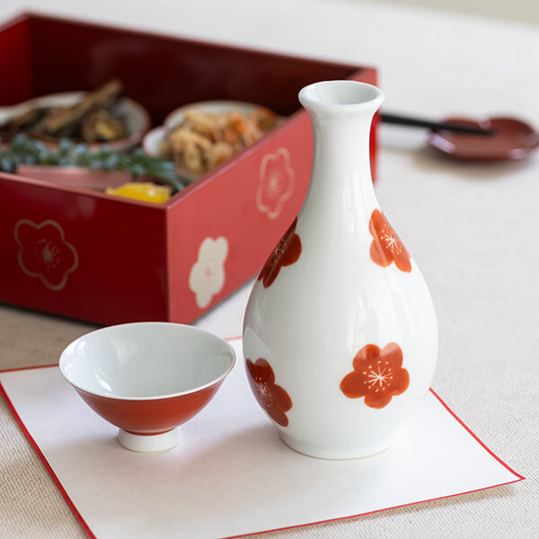 白い素地に映える赤い梅の花をあしらいました。