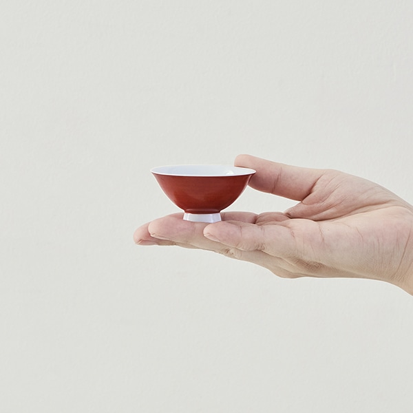 手塗りで仕上げた、波佐見焼のおちょこ。