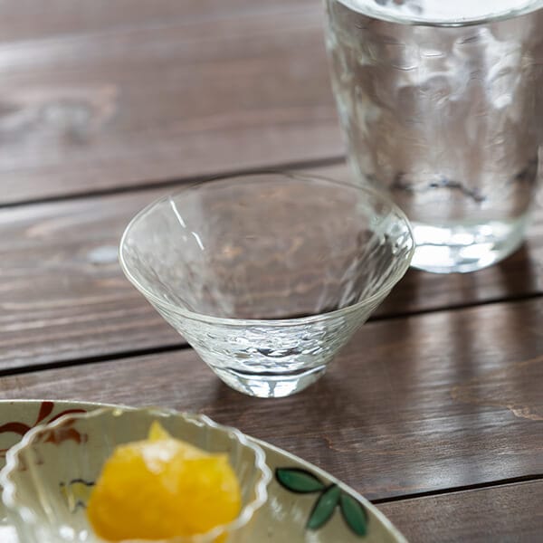 独特の質感から落ちる影が美しい、日本酒によく合うガラスのお猪口。