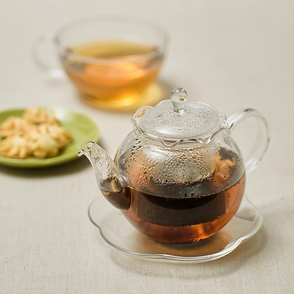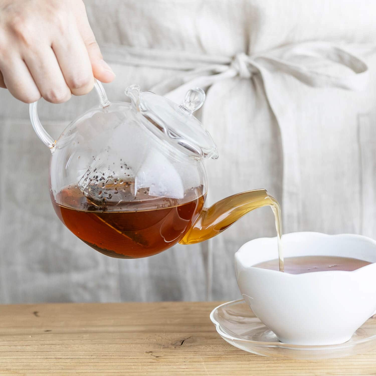 透明なガラスだから、茶葉やハーブの色合いが美しく映え、お茶を淹れる時間そのものを楽しめます。