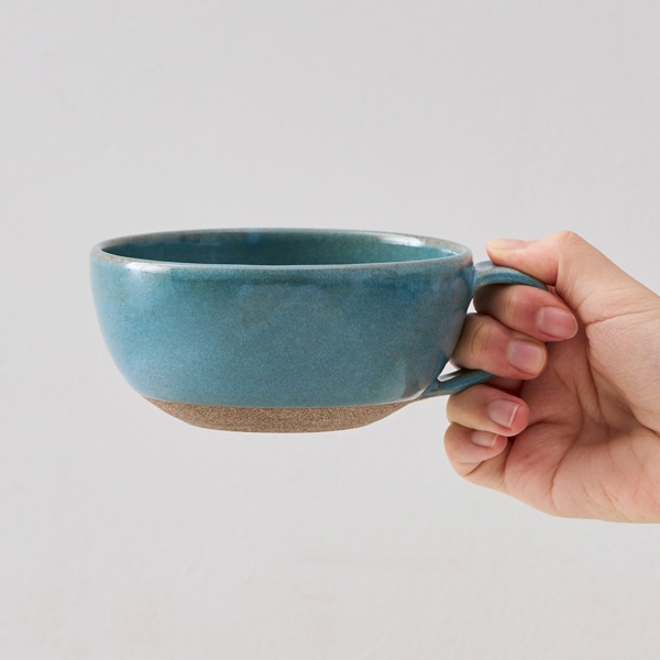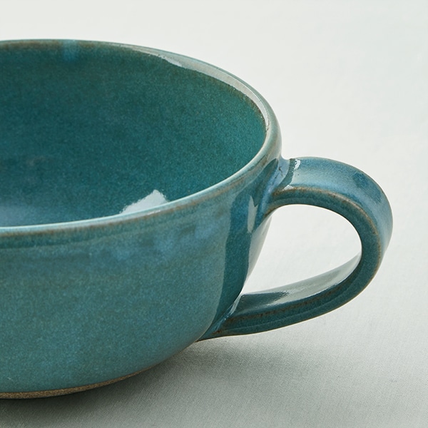 爽やかなブルーが印象的なスープカップ。