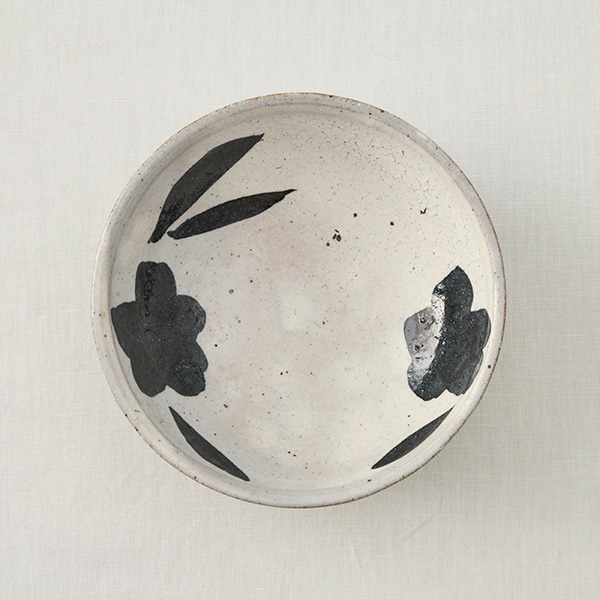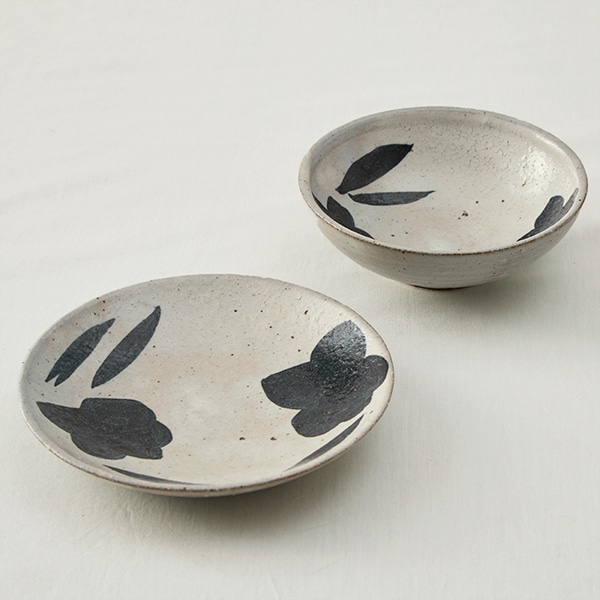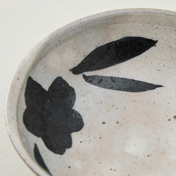黒呉須で花や葉を大胆にあしらった銘々鉢。