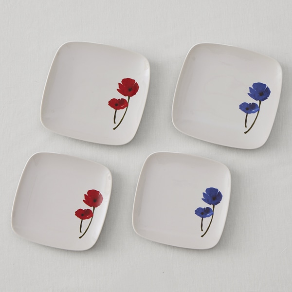 (各種別売り。本品は、ポピー スクエアプレート14cm レッド。)