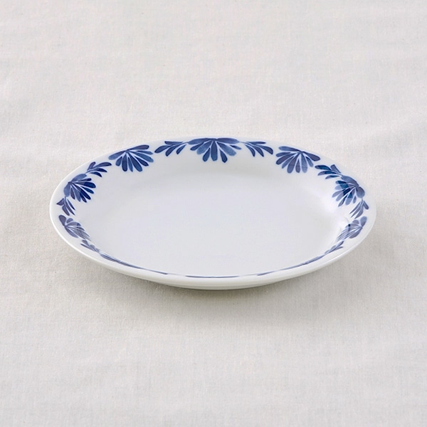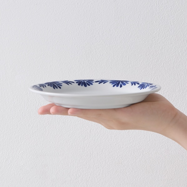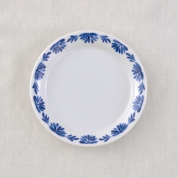 白磁に深い青色の花模様が映える、16cmのプレート。
