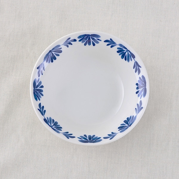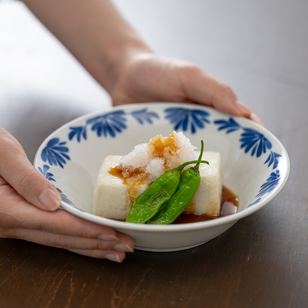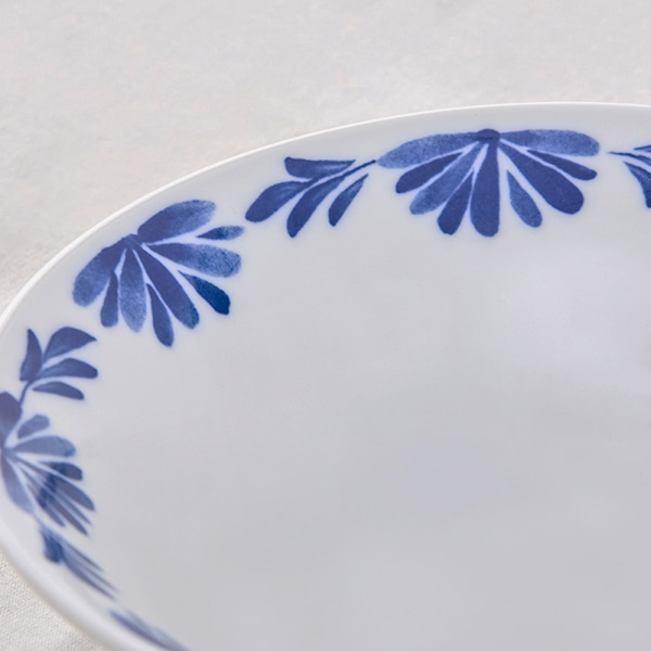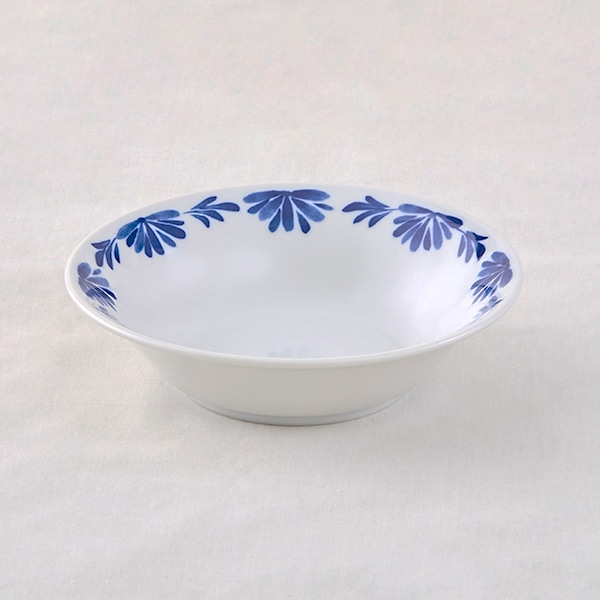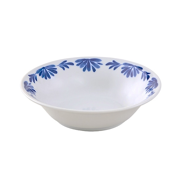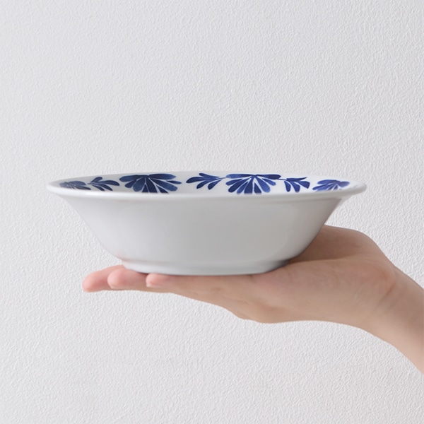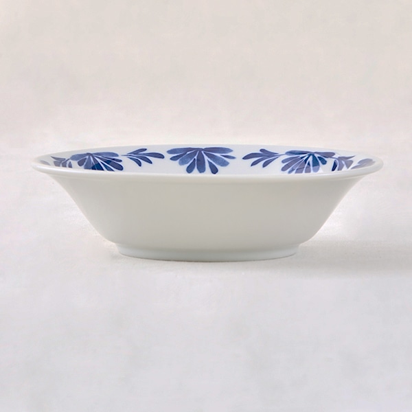 白磁に深い青色の花模様が映える、17cmのボウル。