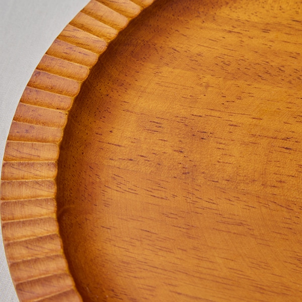 天然木の風合いを生かした、木製のリムプレート。