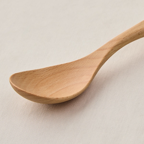 木のスプーンは、軽くて持ちやすく、口当たりがやさしいのがポイント。