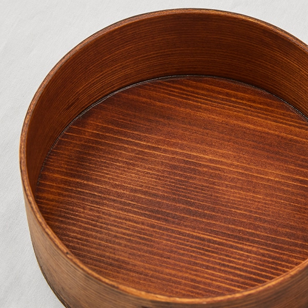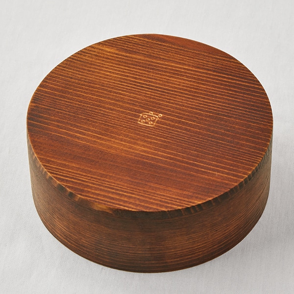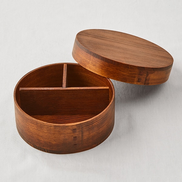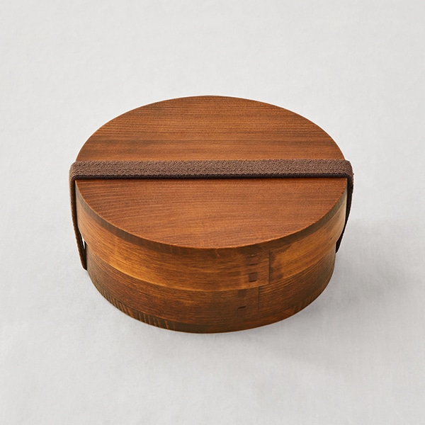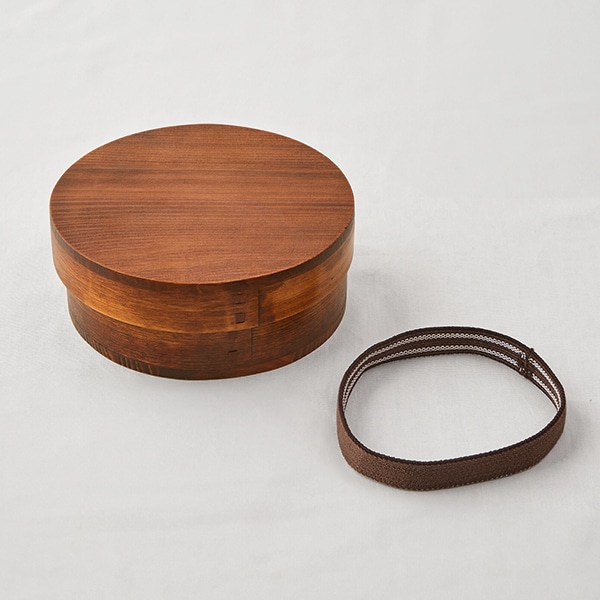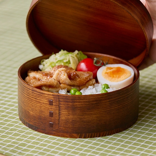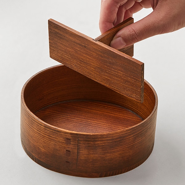 角がなく、やわらかい印象の丸形のわっぱ弁当箱。