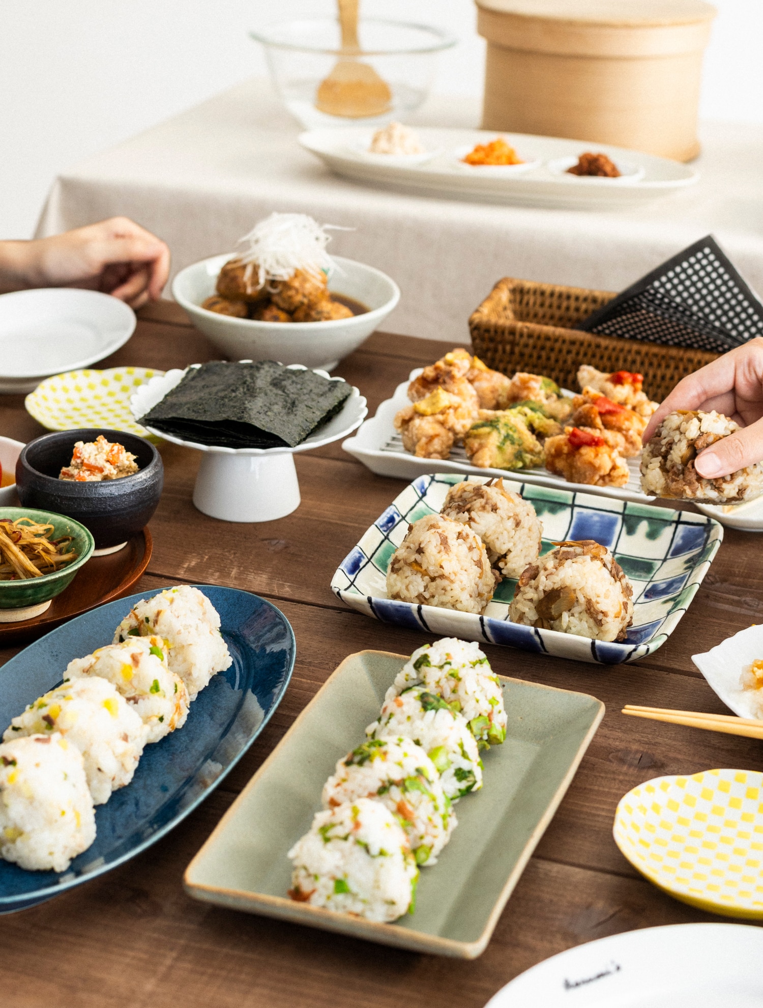そんなおにぎりでつくるビュッフェは、がんばり過ぎず肩の力を抜いて楽しむあつまりごはんにぴったり。気の置けない友人や仲間たちと、ピクニックのような気分で、楽しい時間を過ごしてみませんか。