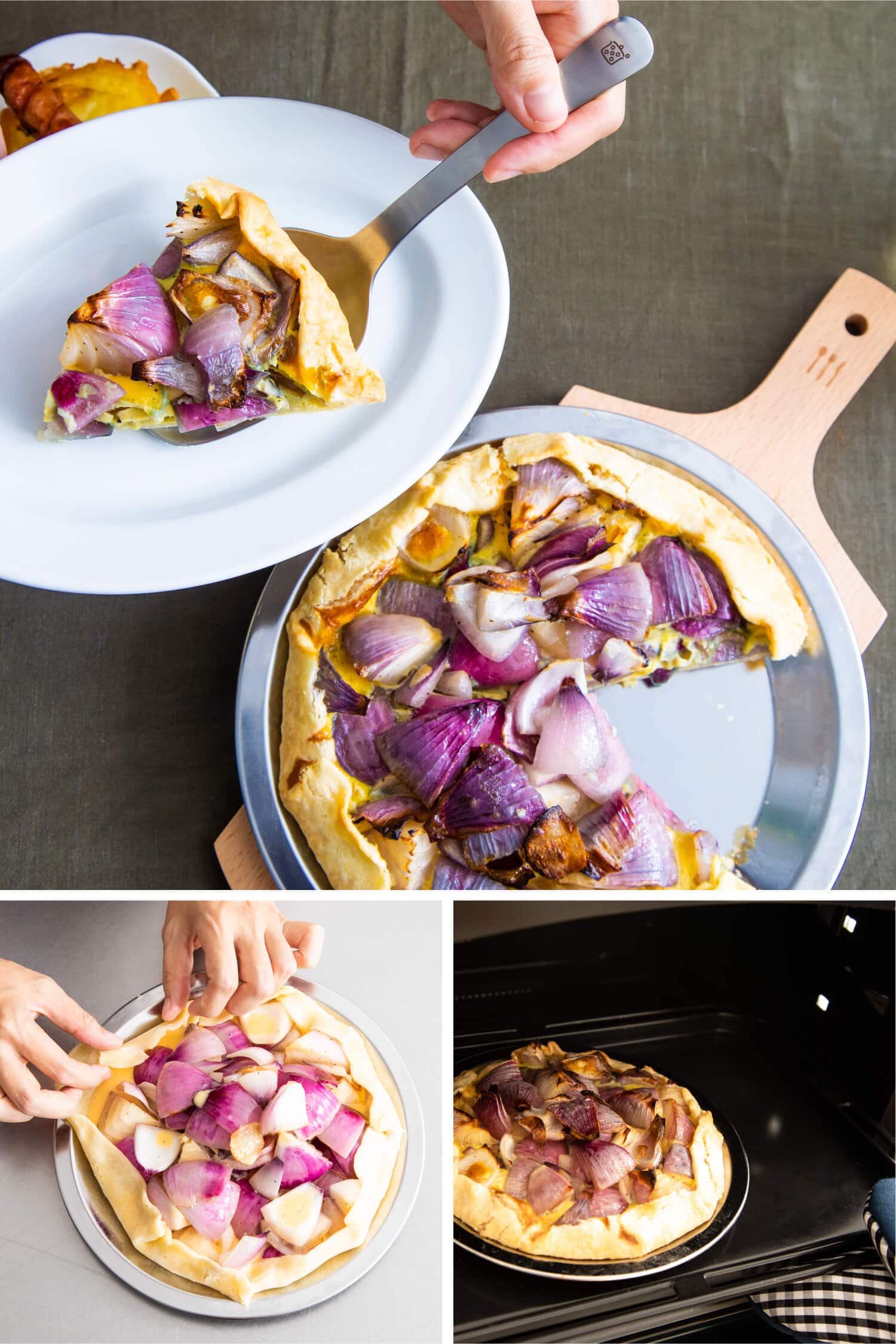旬の野菜を使ったオーブン料理は、野菜の甘みがより引き立ち、秋の味覚を存分に楽しめます。パイ皿の上にキッシュの生地をひいて野菜を包み、オーブンへ。軽くて扱いやすいパイ皿は、ピザやキッシュなど、取り分けやすいパーティー料理を作るときにも使えて便利です。