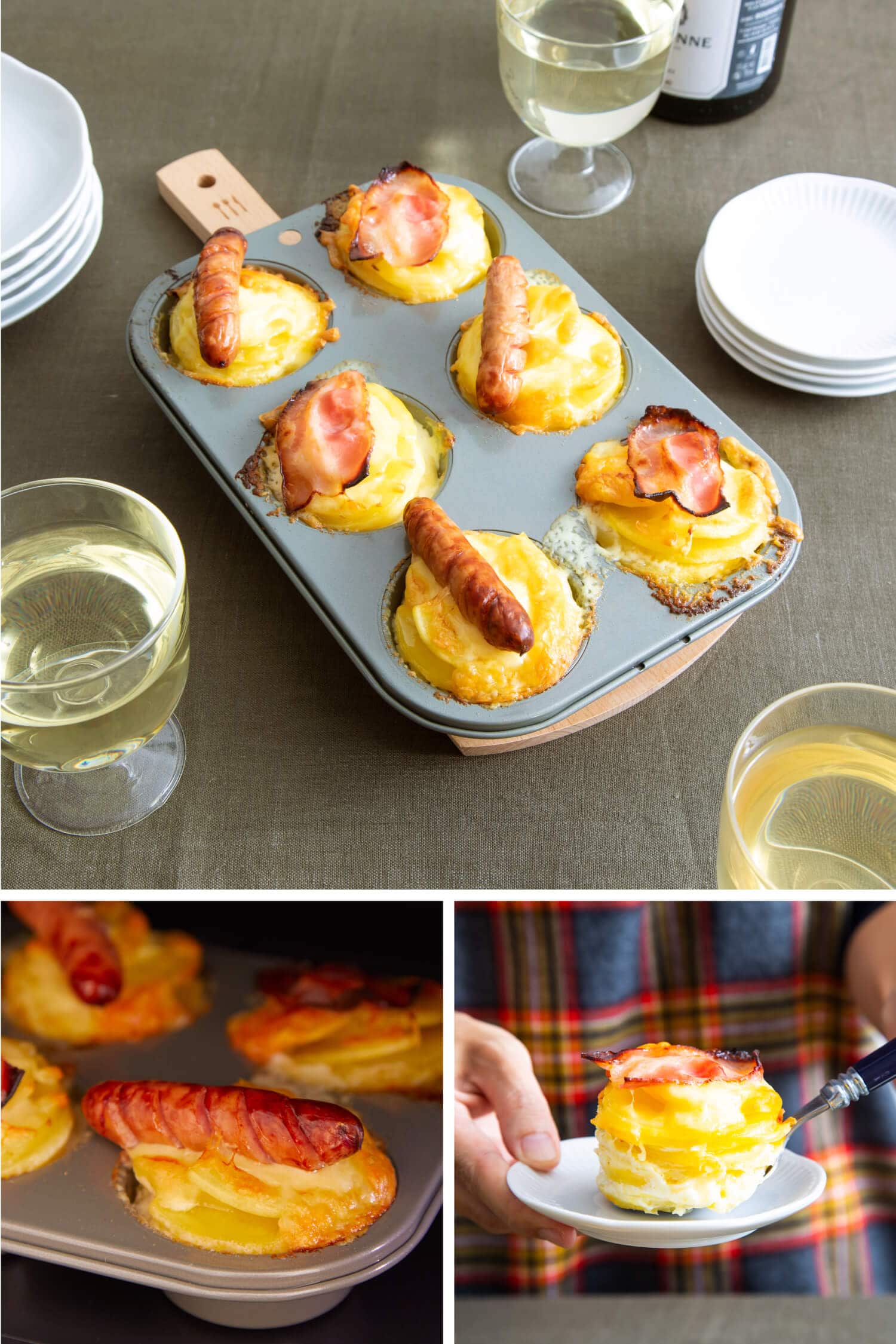 マフィン型で作る小さなオーブン料理はいかがですか。じゃがいもやチーズ、ソーセージやベーコンをのせて、こんがりと焼き上げたポテトのマフィン風ケーキは、見た目にもかわいらしく、食卓を囲むみんなの心も和やかになります。一人ひとつお皿に取り分けて、あつあつをいただきましょう。