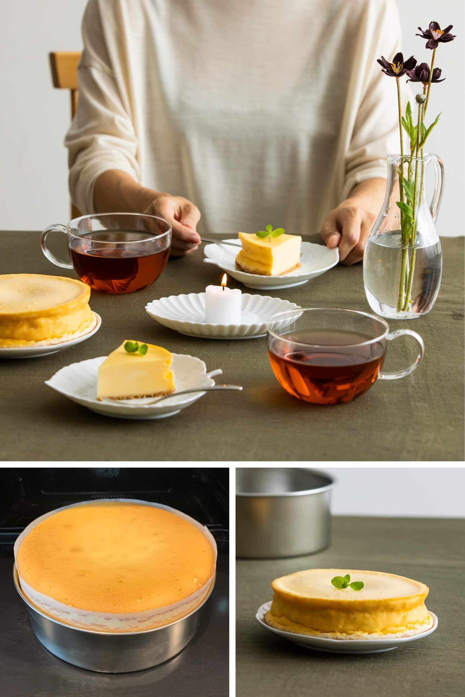秋の夜長の締めくくりにはスイーツの定番、チーズケーキ。白ワインとの相性抜群で、友人との会話も弾みます。焼いたケーキは冷凍しても味が変わりにくいので、まとめて作ってストックしておけば、急なおもてなしの席でも重宝します。