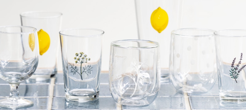 料理を盛りつける器と同じように、グラスもまた食卓の雰囲気をつくる大切な存在です。ジュースやワインなど、飲みものに合わせてグラスを選ぶだけで、食事の時間もより楽しく感じられます。形や柄などのデザインにもこだわって、お気に入りのひとつをお選びくださいね。