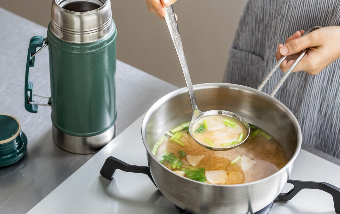 おかずができ上ったら、いよいよおべんとう箱に詰めていきます。1つひとつ丁寧に、ふたを開けたときに、みんながよろこぶ顔を想像しながら、おいしそうに詰めていきましょう。 入れものは素材や形、サイズのバリエーションがあると、並べたときに動きが出て、にぎやかで楽しくなります。
