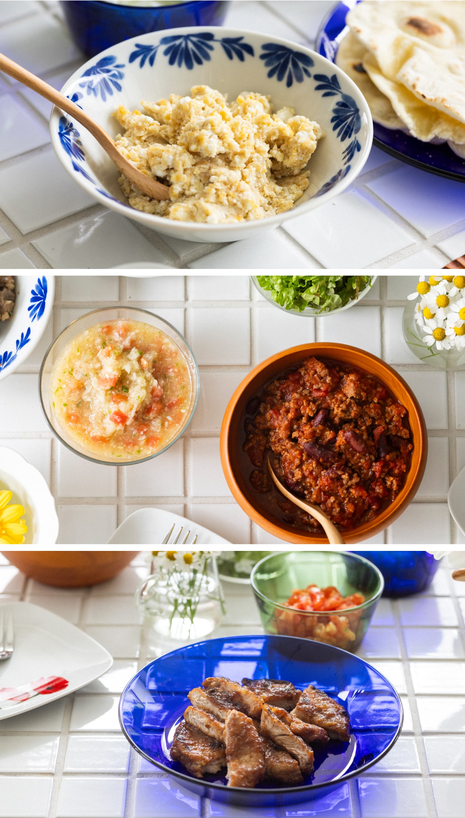 食感が楽しい野菜や旬の野菜、食べ応えのある肉料理、いつもの常備菜なども、一緒に食卓へ。