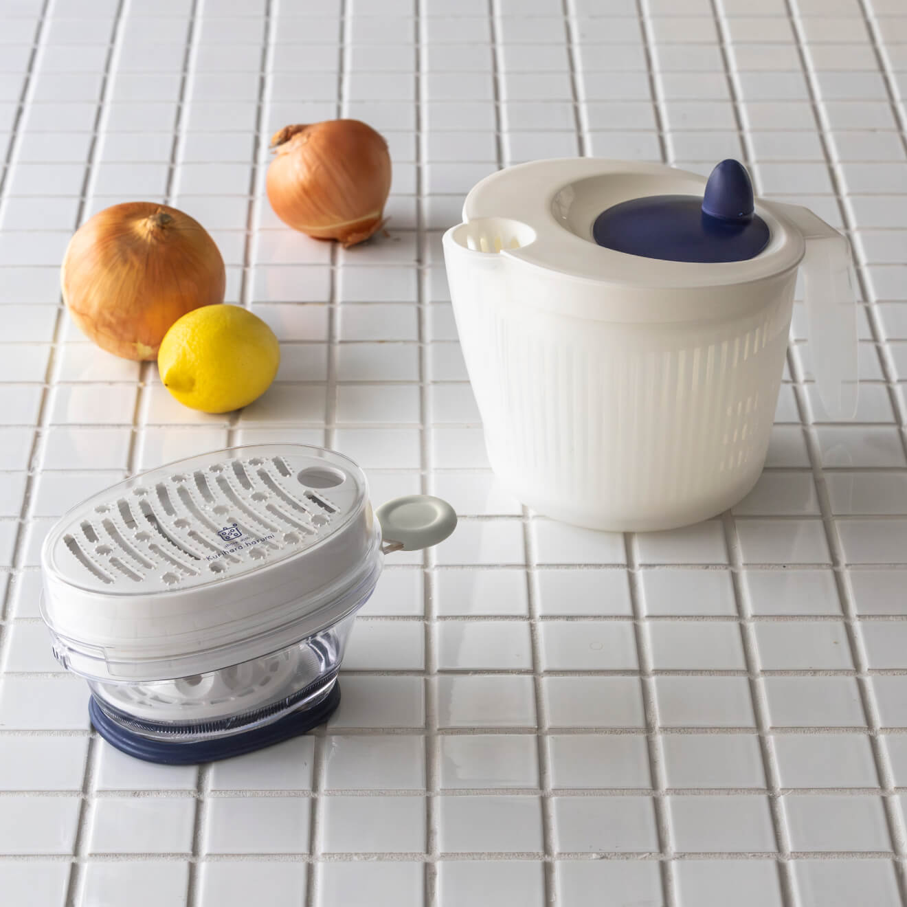 「サラダがおいしく作れたら、ちょっとうれしくなります。それには野菜の水気をきちんと切ることが大事です。レタスやキャベツなどの葉ものは刻んで氷水にひたしてパリッとさせ、スピナーでしっかり水気を切ったら、食べる直前まで冷蔵庫に。」