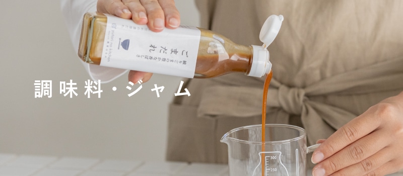 食材にかけるだけ・あえるだけで手軽に一品仕上がる、便利な調味料セットや、ちょっとしたギフトにうれしい、素材の味わいを大切にしたジャムを展開しています。