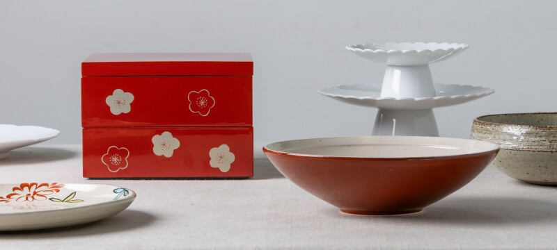 主役となる器から、料理を引き立てる器、祝いの席を整える道具まで。新しい年のはじまりにふさわしい品々が、食卓に華やかさと彩りを添えてくれます。暮らしに合わせて選んで、お正月のしつらえをお楽しみくださいね。