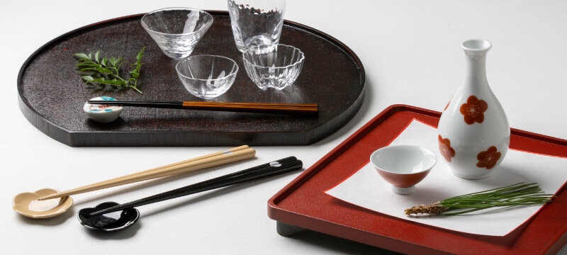 新年の杯を交わす酒器、心あらたまる一膳の箸、ごちそうを運び、食卓を整えるお盆やお膳。晴れやかな空気を添える道具たちが、お祝いの時間をよりあたたかく、そして心に残るものにしてくれます。