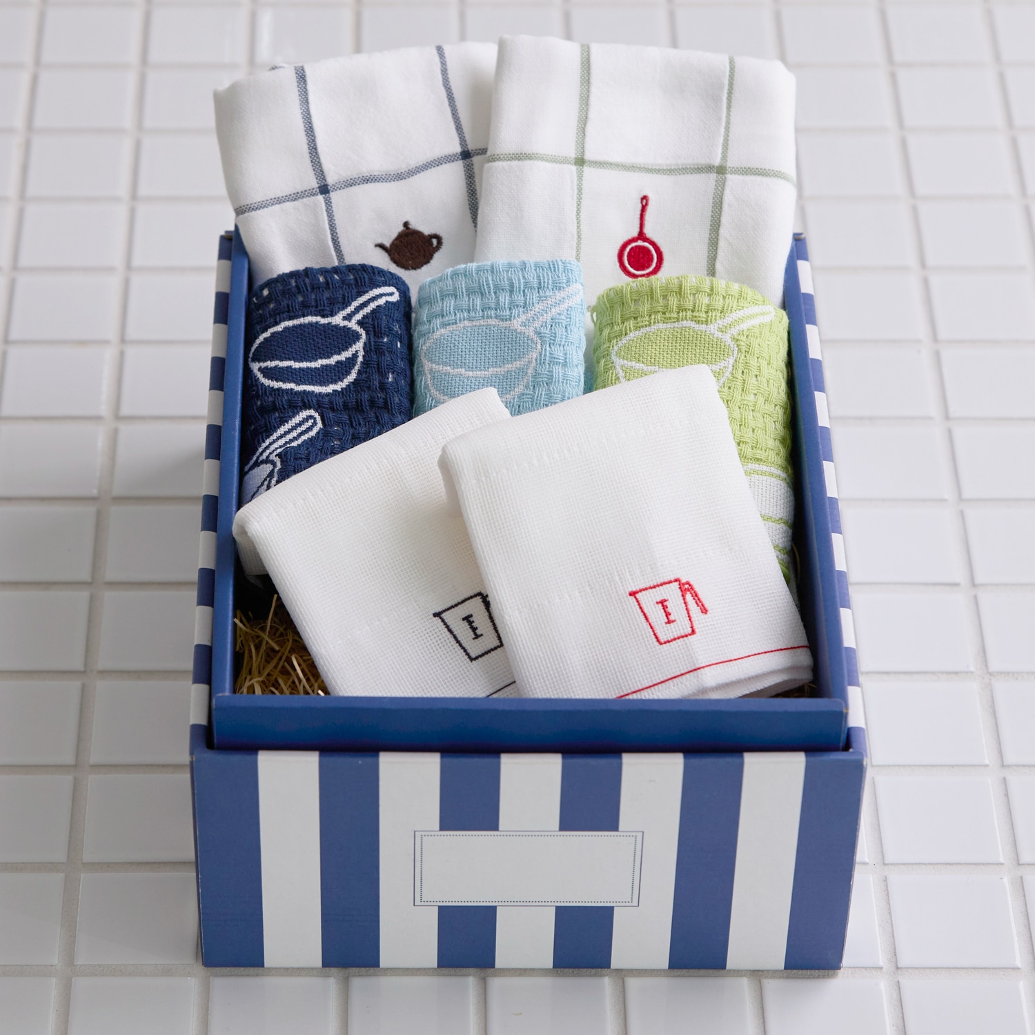 ギフトラッピングは、収納ボックスとしてもお使いいただける、ボーダー柄のギフトボックスに、栗原はるみのレシピとイラストがプリントされた、オリジナルの包装紙でお包みしてお届けします。