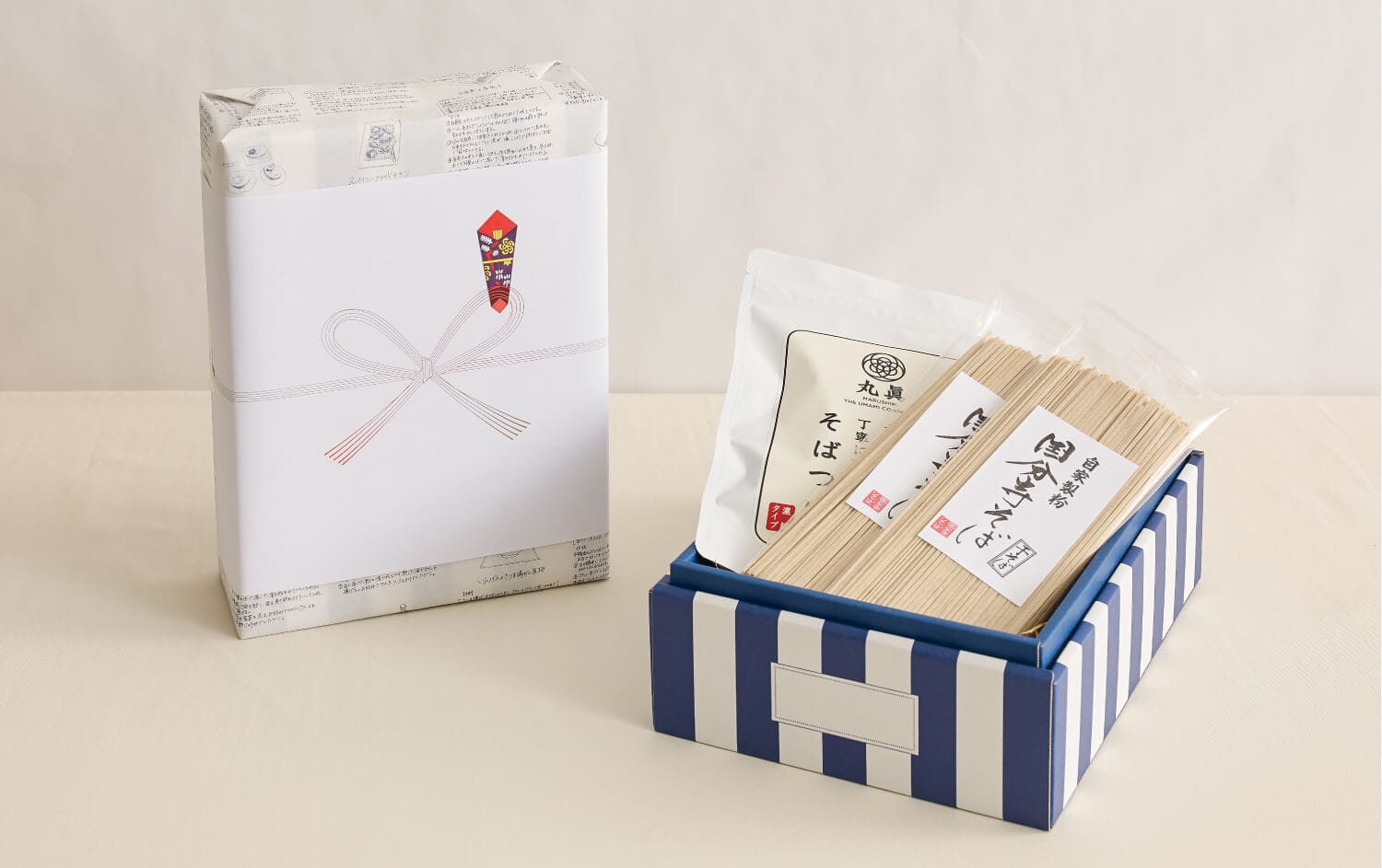 毎年ご好評いただいている、神奈川県藤沢市にある鰹節問屋・削り節メーカー丸眞さんのこだわりのめんつゆと、神奈川県海老名市にある蕎麦屋、国分寺そばさんの乾麺二八そばをご用意しました。ほっと身体があたたまるそばは、大切な人と過ごすひとときにおすすめ。年越しそばとして、お歳暮の贈りものにぜひどうぞ。