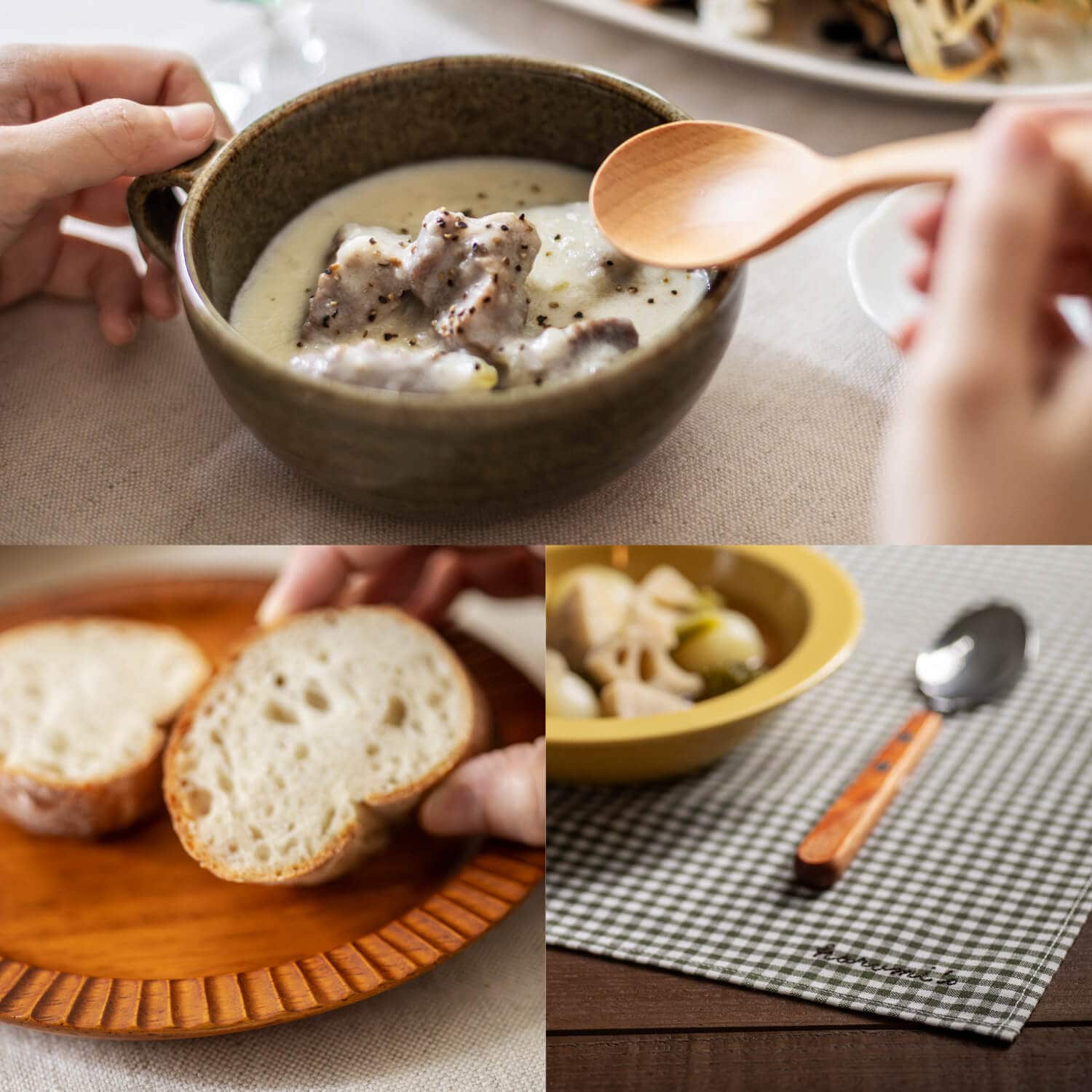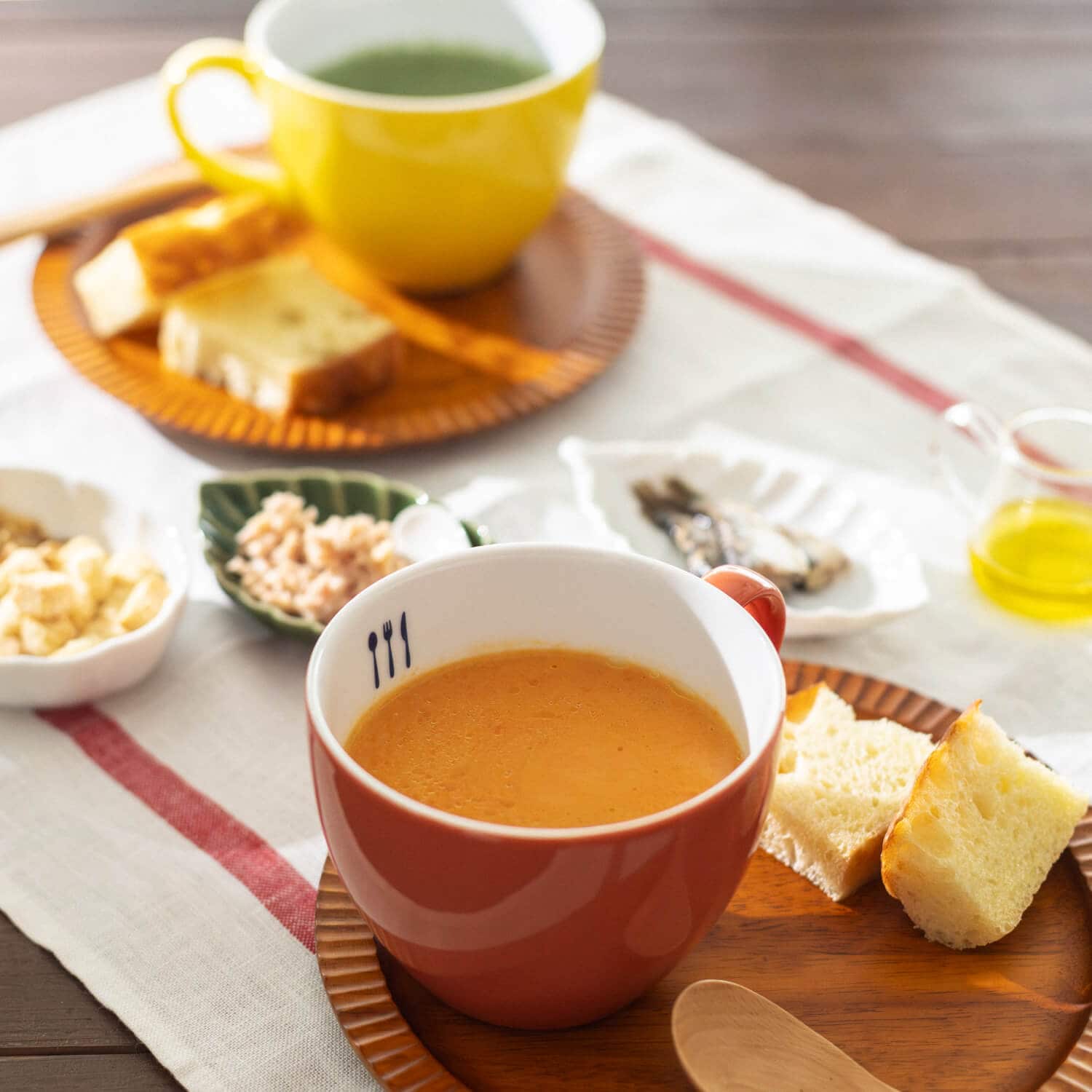 スープの時間をよりごきげんにしてくれるのが、器やファブリックなどの「しつらえ」です。