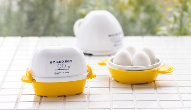 電子レンジで簡単にゆでたまごが作れる調理器。お湯をわかす手間がいらないので、忙しい時に頼れるアイテムです。おべんとうや朝食の準備、常備菜作りまで、毎日のキッチンで活躍します。
