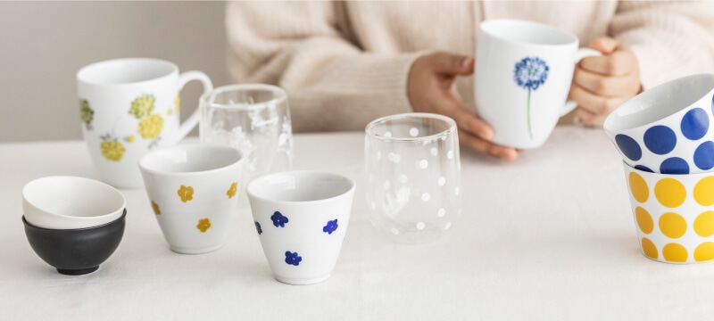 お気に入りのカップで飲む一杯は、身も心もほっとあたたまります。その日の気分や飲みものに合わせて選ぶことも、ティータイムの楽しみのひとつ。洋食器から和食器まで、幅広いデザインをご用意しました。