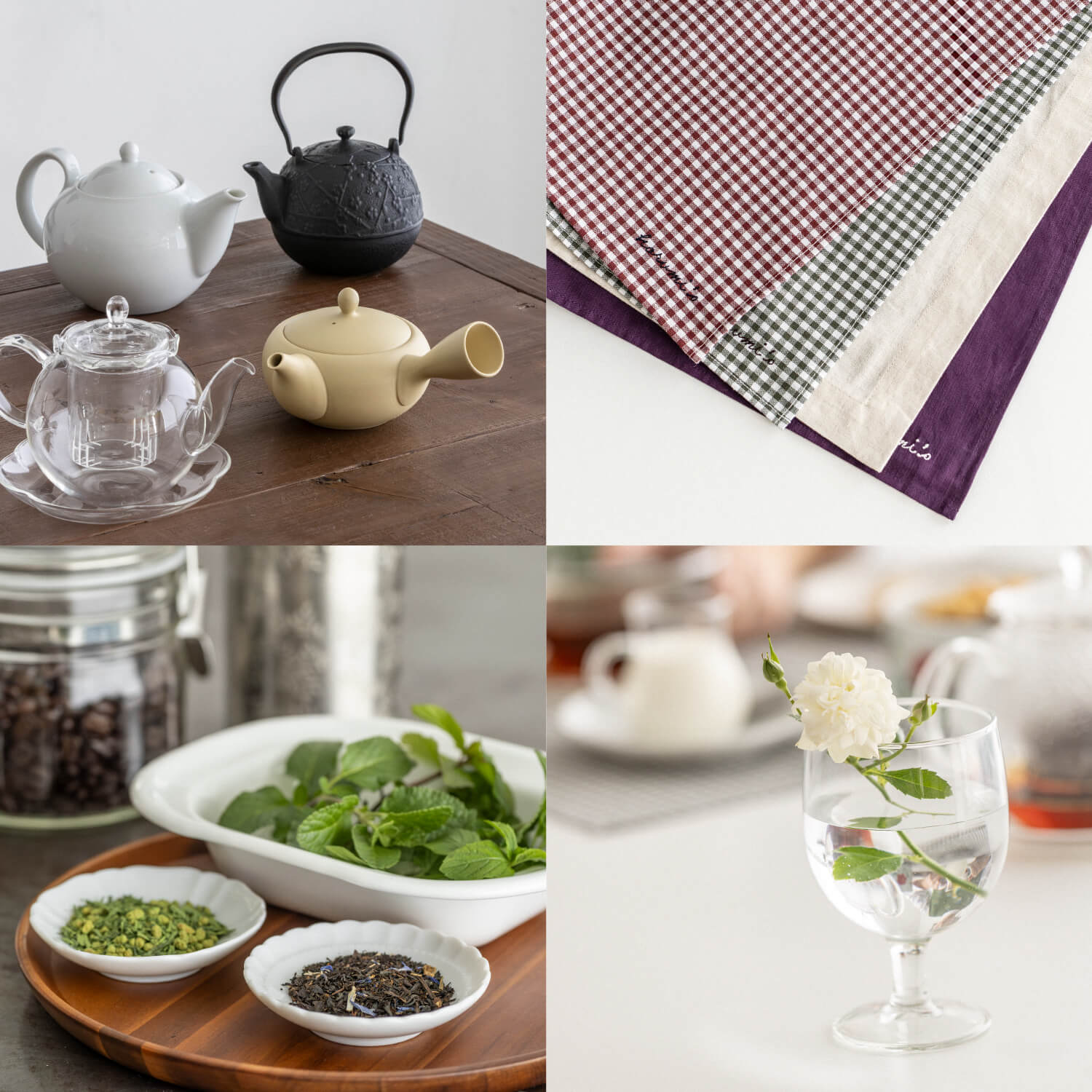 紅茶にハーブティー、玄米茶と、他にもお茶の種類はいろいろ。 お茶の種類に合わせて、道具を揃えて使ってみたり、淹れ方にこだわってみたり。自分なりにひと工夫して楽しみを見つけると、お茶の時間はもっと豊かに、とっておきに変わりますよ。