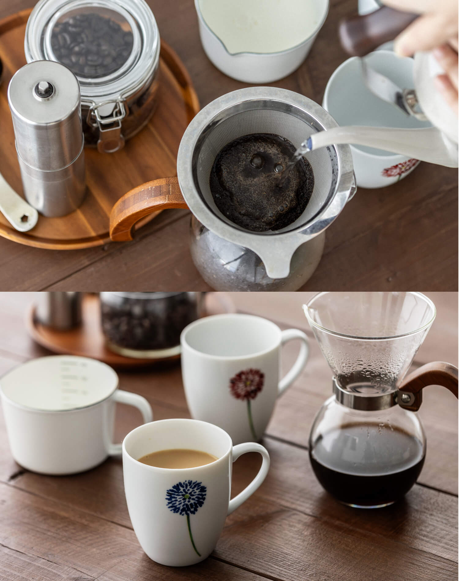 豆を挽くところからはじめれば、広がる香りもごちそうに。ゆっくりとお湯を注ぐハンドドリップの時間は、立ち上る香りとともに、心までふんわりと解きほぐしてくれます。気分に合わせて、たっぷりの牛乳でいただくカフェラテもまた、やさしい味わいでほっとさせてくれます。