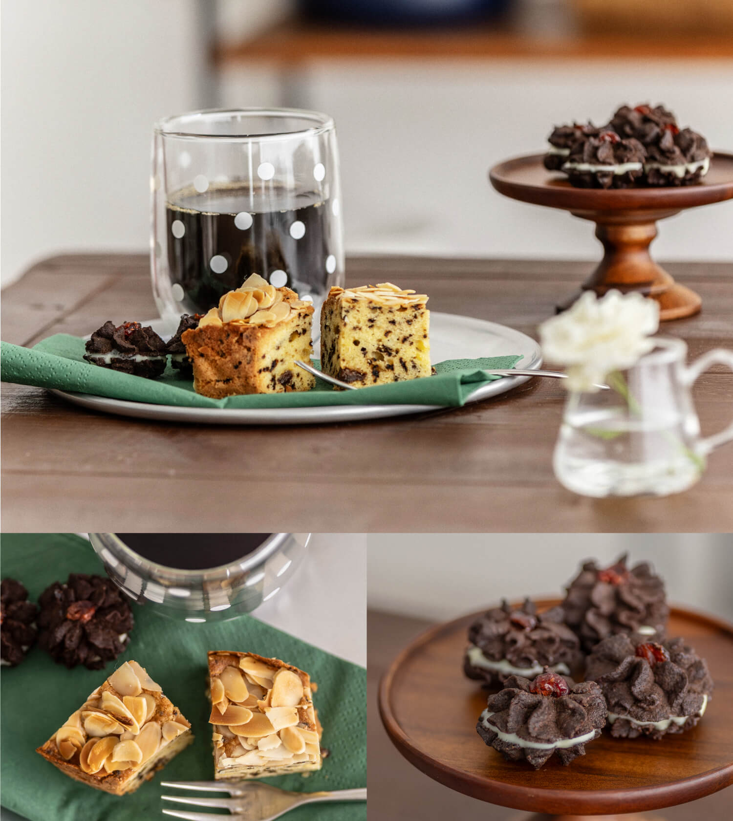 何種類か作って、または、買ったお菓子と組み合わせて、自分好みのアフターヌーンティーも楽し気です。器にコンポートを使ったり、ちょっとしたお花を飾って、おもてなしのティータイムもいいですね。