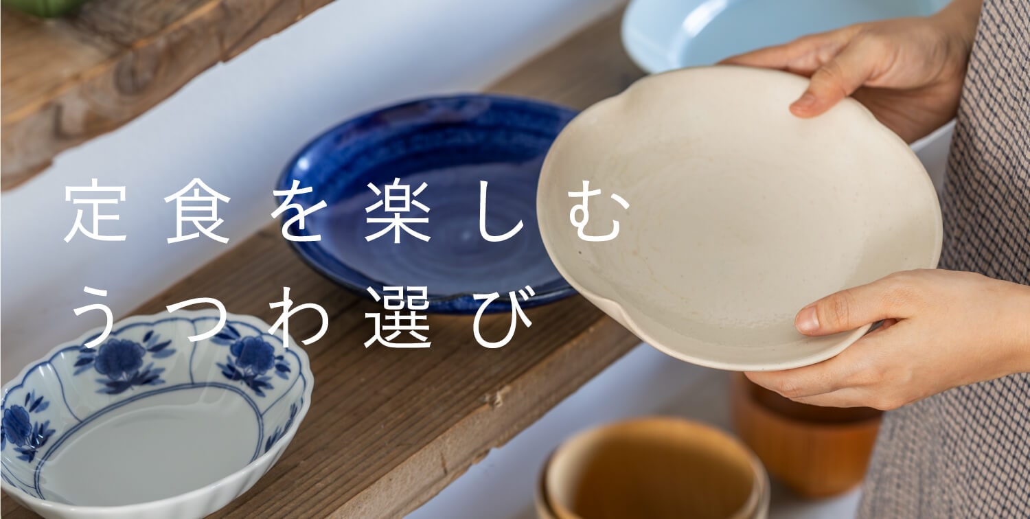 ひとり分にまとめられる一汁三菜の定食のしつらえ。お膳のなかは、器と器、器と料理の組み合わせは、何通りも存在します。自由にいろいろな組み合わせを試して、自分や家族の好みを見つけながら、定食をもっとたのしく、おいしくいただきましょう。