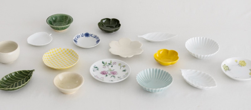 副菜の器は、シンプルなものはもちろん、ふだんはあまり使わないような色や、葉っぱ・花の形をした個性的なデザインに挑戦してみるのもおすすめです。小さい器でも、色や形の違いが定食を華やかに見せ、組み合わせ次第で見た目にも楽しい食卓になりますよ。