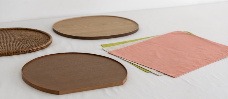 器を引き立て、定食全体の印象を整えてくれるお盆やランチョンマット。ひとり分がそれぞれ決まっているから、食卓全体もすっきりとした印象になります。春は明るい色合いのランチョンマット、夏は涼しげなラタン素材など、季節に合わせて色や素材を変えてコーディネートを楽しむのもおすすめです。