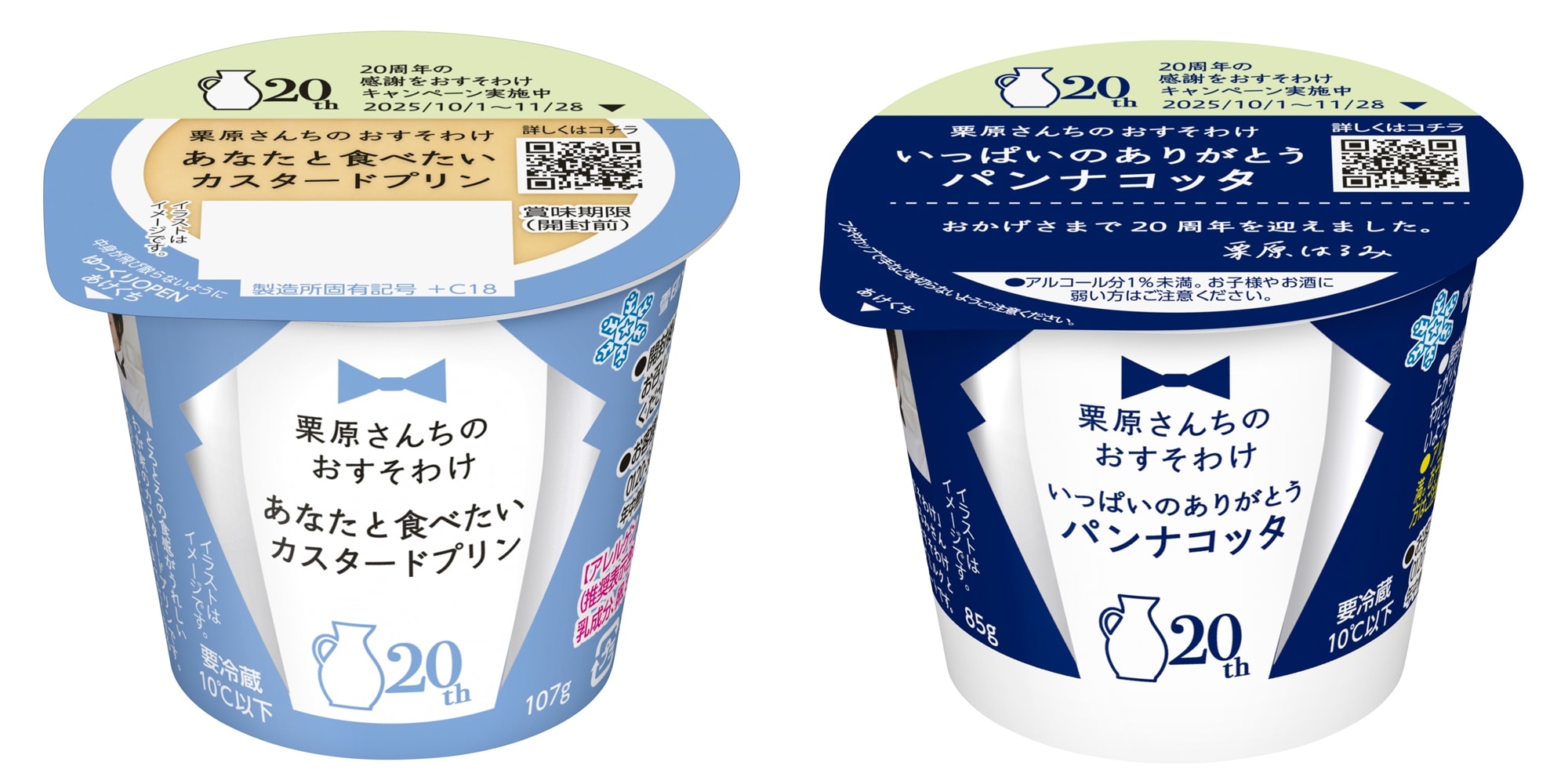 合わせて、『栗原さんちのおすそわけ あなたと食べたいカスタードプリン』と、『栗原さんちのおすそわけ いっぱいのありがとうパンナコッタ』が、9月下旬よりリニューアル発売となります。