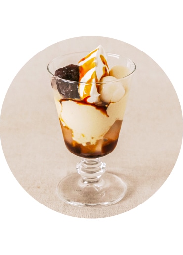 洋なしとキャラメルのパフェ/洋なしとほうじ茶のパフェ