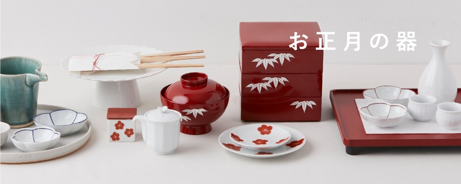 酒器はさまざまな種類があるとたのしいもの。 おめでたい日の食卓では、気に入った酒器でたのしくお酒をいただくと、うれしい気分になります。 あえて揃えずに、バリエーションを出したラインナップの中から、好きな酒器を選ぶ楽しさでお祝い気分を盛り上げましょう。